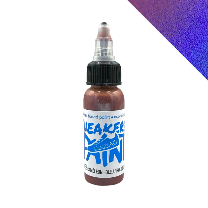 La peinture Caméléon Bleu / Rouge SneakArts est une peinture professionnelle de haute qualité, fabriquée en France conçue pour la personnalisation et la rénovation de baskets, sacs et vêtements.