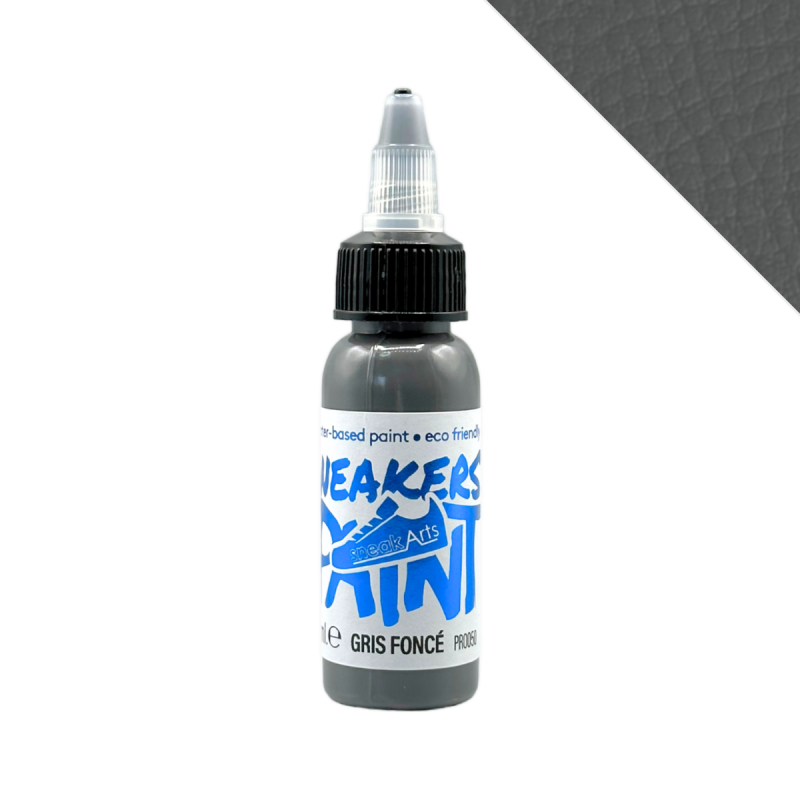 La peinture Gris Foncé SneakArts est une peinture professionnelle de haute qualité, fabriquée en France conçue pour la personnalisation et la rénovation de baskets, sacs et vêtements.