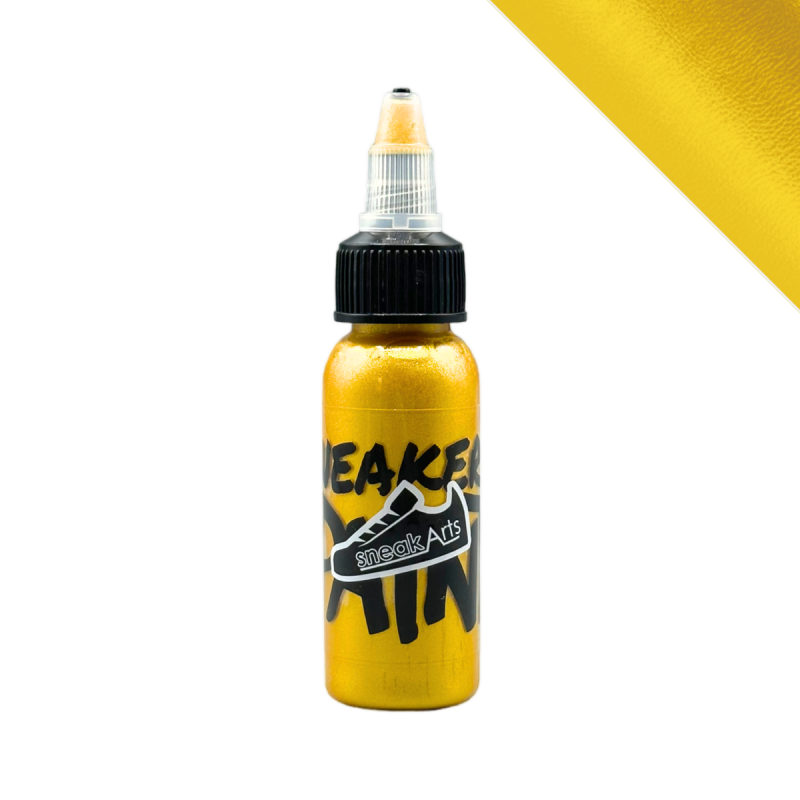 La peinture Métallic Or SneakArts est une peinture professionnelle de haute qualité, fabriquée en France conçue pour la personnalisation et la rénovation de baskets, sacs et vêtements.