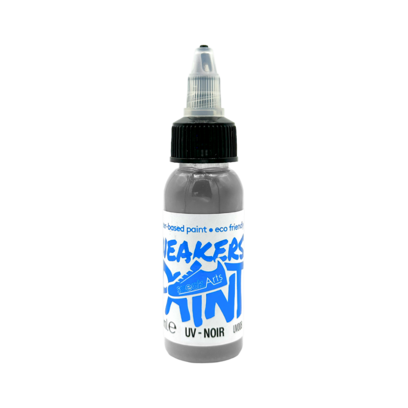La peinture UV Noir SneakArts est une peinture professionnelle de haute qualité, fabriquée en France conçue pour la personnalisation et la rénovation de baskets, sacs et vêtements.
