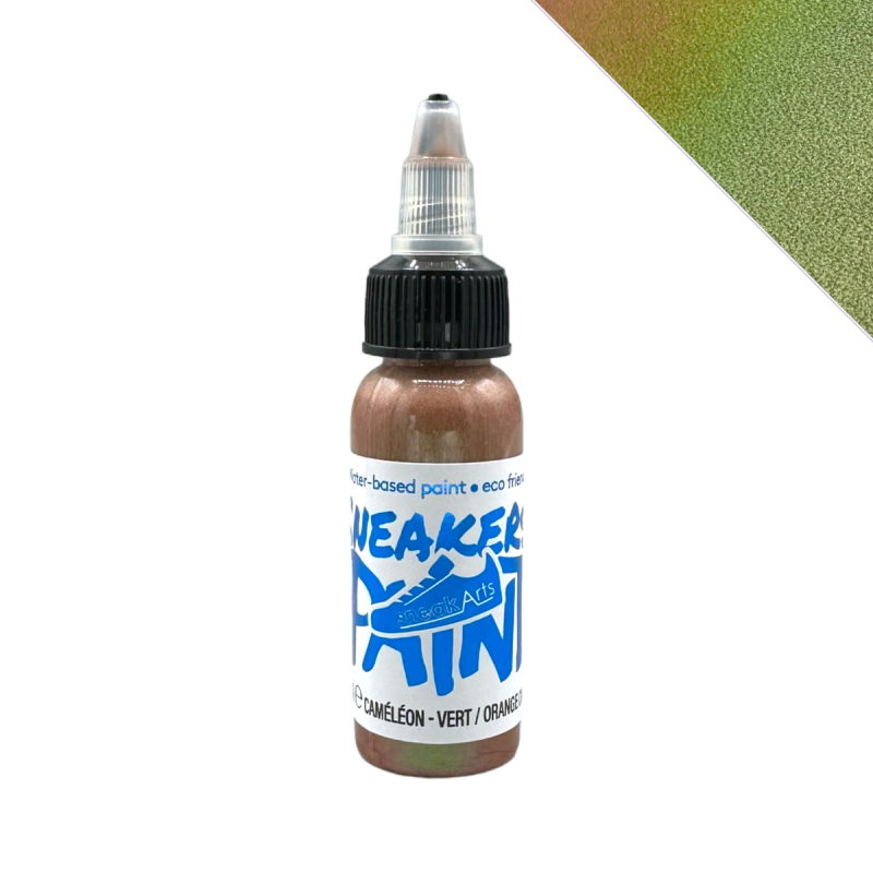 The SneakArts Chameleon Green/Orange Leather Paint is considered the best leather paint in the world. Whether to renovate leather or customize your sneakers or clothes.